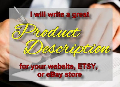 I will review your product images, current descriptions (if applicable) and the key features that you would like to highlight. Then, I will write a fun, informative description that you can use on your website, catalog or any of your marketing materials. All product descriptions will be appropriate for your own store's websites and third party selling sites like eBay, ETSY, Amazon and more.